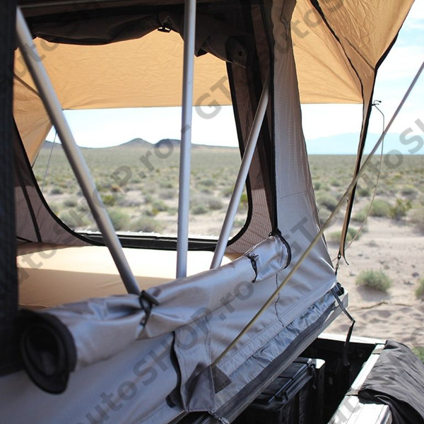 2 ferestre in tavan, dotate cu plasa anti-insecte - asigura ventilatia si aerisirea daca este cazul, plus uitatul la stele, cand se scoate aparatoarea exterioara.