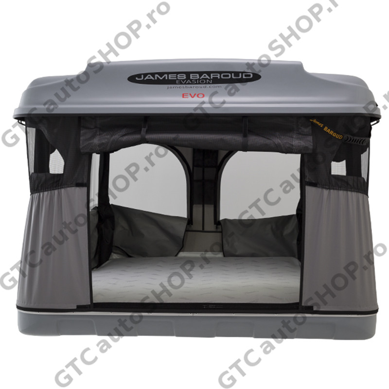 Dintre toate corturile cu deschidere orizontala de pe piata, cortul de plafon James Baroud Evasion are cel mai mare volum interior. Datorita spatiului sau interior mai mare, Evasion ofera un spatiu confortabil pentru adulti sa stea in pozitie verticala la fiecare capat al cortului. Cu ferestrele sale panoramice de 360º, aerul circula liber prin cort, beneficiu in zonele cu clima mai calda.