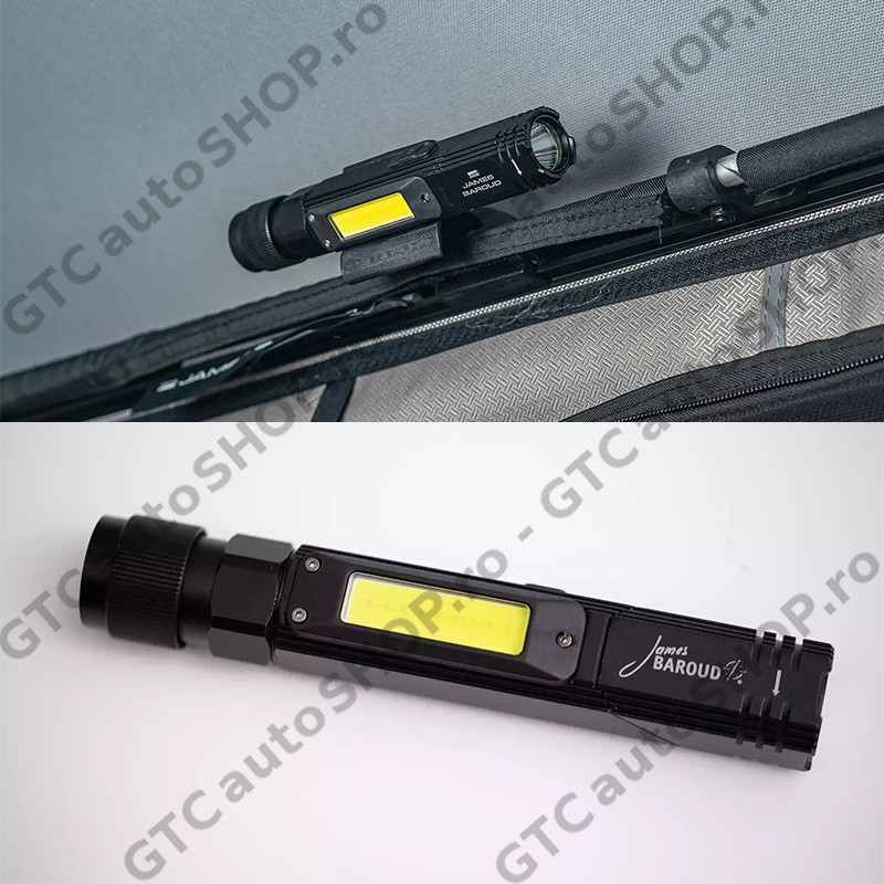 Lumina integrata – Lumina din interiorul cortului este asigurata de o lampa portabila cu baterie litiu ce se reincarca prin USB si permite cateva ore de utilizare. Este prevazuta cu magneti incorporati care permit atasarea rapida si sigura pe orice suprafata metalica. De asemenea, vine cu o optiune de lumina de culoare rosie pentru a evita insectele.