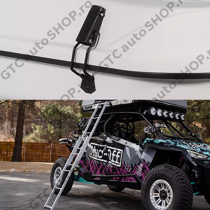 Scara telescopica – Scara James Baroud inclusa se ajusteaza pentru a se potrivi cu inaltimea vehiculului dvs., extinzandu-se pana la 2.4m si suporta pana la 200kg. Are trepte anti-alunecare iar picioarele sunt acoperite cu cauciuc pentru o prindere ferma pe teren variat. Corturile sunt prevazute cu mecanisme fiabile pentru atasarea scarii pe ambele laturi. Fabricate din aluminiu, scara si sistemul de fixare sunt solutia ideala fiind robuste dar si usoare. Scara vine cu o husa de depozitare din material PVC si se poate depozita in cort pe timpul deplasarilor. Se poate comanda separat (vandut separat) scara marime XL ce se extinde pana la 3m si are aceeasi greutate ca cea standard.