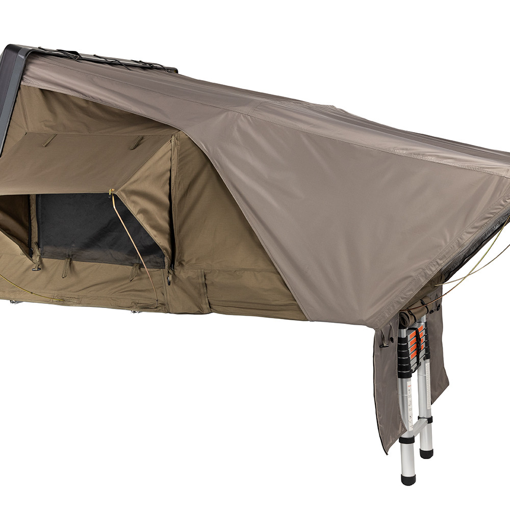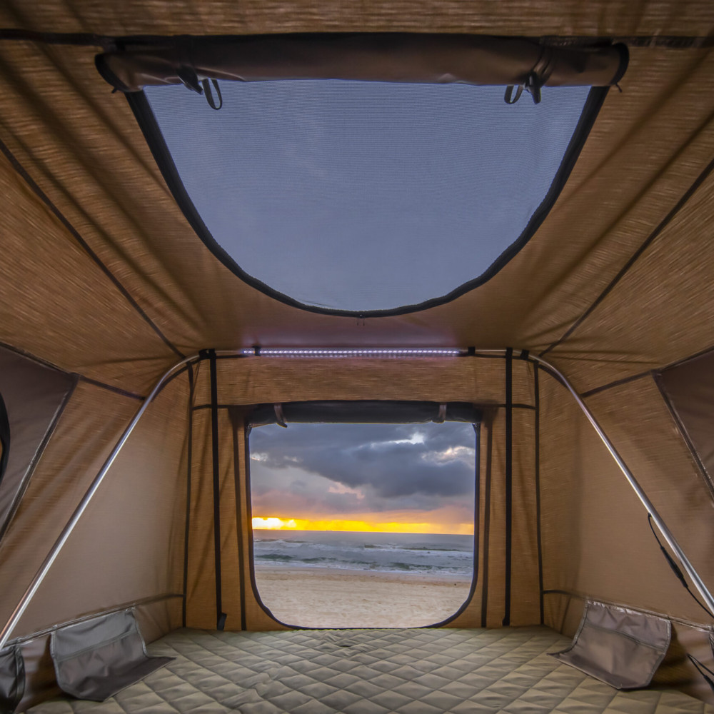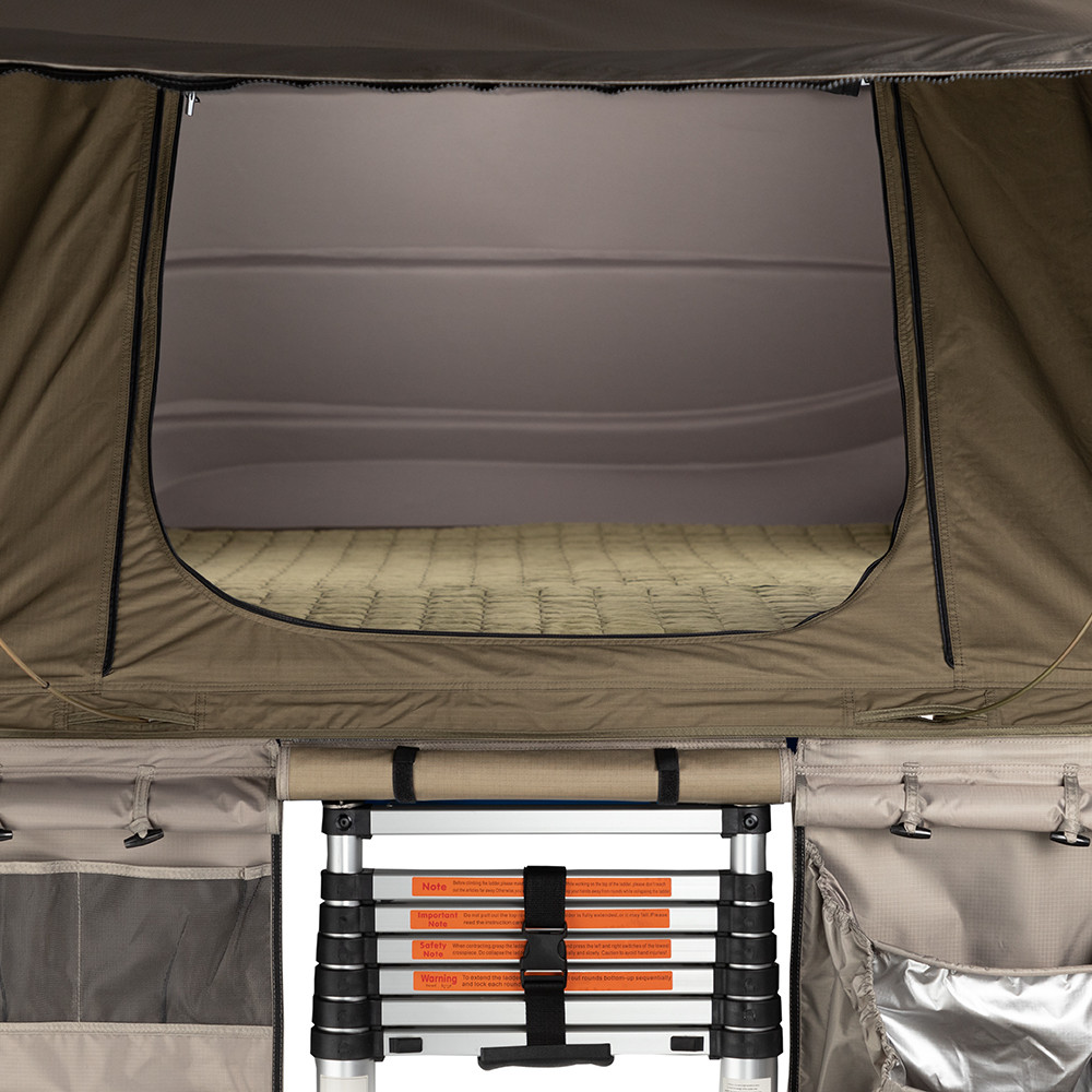 Cu accentul plasat pe confortul si usurinta deschiderii si strangerii, avantajele cum ar fi scara telescopica, depozitata intern, deschiderea asistata de telescop pneumatic si fixarea in doar 3 chingi push-lock fac montarea cortului si calatoriile sa pare ca o joaca de copii! Cortul Esperance nu arata excelent doar in camping, ci se potriveste (in stare inchisa), avand design si culoare unice cu design-ul majoritatii autovehiculelor – pentru un look elegant si modern.
