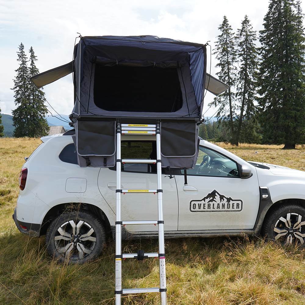 Cort de plafon auto Overlander Discover MAX 1.6 x 2.1m cu Sky Roof cu sky roof este o solutie excelenta pentru cei care doresc sa calatoreasca si sa campeze in aer liber, oferind confort si protectie in acelasi timp. Cortul are o constructie solida si durabila, fiind fabricat din materiale de calitate superioara.
