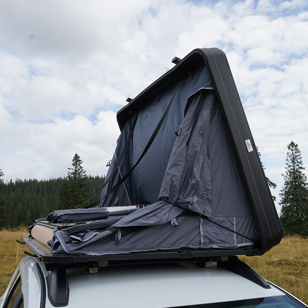 Carcasa rigida din ABS, actionata cu telescop hidraulic, asigura o deschidere usoara si rapida a cortului. Aceasta carcasa rezistenta protejeaza cortul in timpul transportului si ofera stabilitate pe parcursul utilizarii.