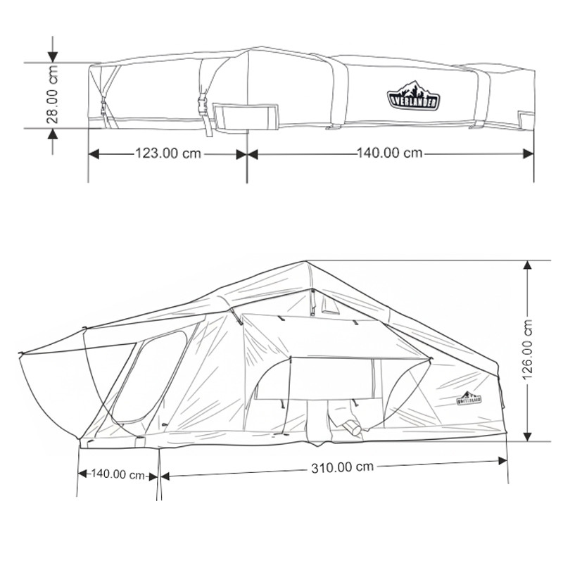 Overlander Explorer 3.0 de 140 cm cu sky roof este proiectat pentru a oferi un spațiu generos și confortabil în timpul aventurilor în aer liber. Dotat cu o extensie, acesta dispune de multiple specificații și caracteristici care îl fac ideal pentru călătoriile cu autovehiculul.