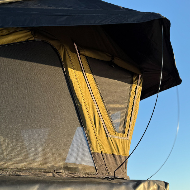 Ventilație & Încălzire: Ferestre laterale și superioare prevăzute cu plasă anti-insecte, pentru o circulație optimă a aerului. În plus, cortul este echipat cu un decupaj special conceput pentru instalarea unui încălzitor tip Webasto, oferind un confort sporit în serile reci.