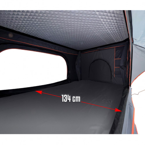 Peretii sunt confectionati din material Oxford PU4000 UPF50+ cu proprietăți impermeabile 280D. Marginea cusăturii este finisată într-o culoare portocalie foarte vizibila, în contrast cu gri / negru cortului.