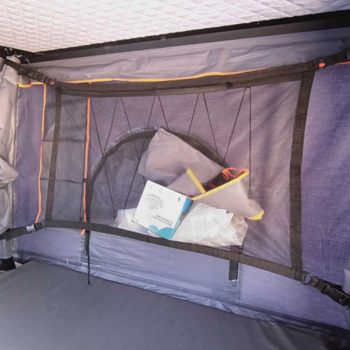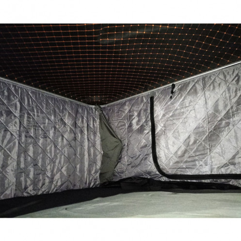 Carcasa din aluminiu are deschidere verticala si are sistem de inchidere cu cheie; este construita din panouri speciale tip fagure, bune izolatoare termic, anti-incendiu si cu greutate si grosime reduse. Are sistem de fixare scara telescopica, pe ambele laturi ale masinii. Are pre-echipare pentru montare rapida de bare cargo pe plafonul cortului (se achizitioneaza separat - 180 euro perechea).