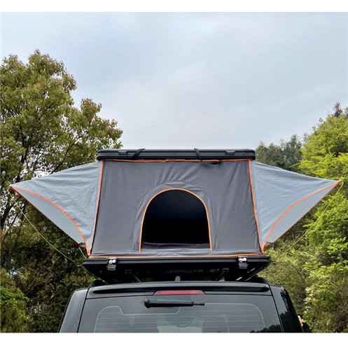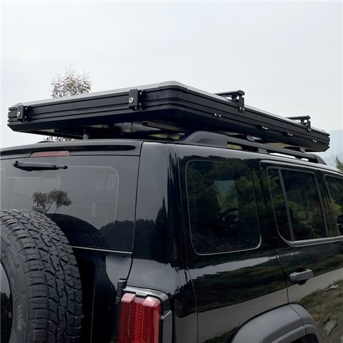 Cortul cu carcasa rigida din aluminiu ERFOUD 131 Black de la BullFace Spania este cu deschidere pe verticala si se poate instala pe plafonul masinilor de dimensiune mai mare.