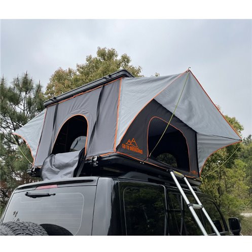 Cortul cu carcasa rigida din aluminiu RISANI 144 Black de la BullFace Spania este cu deschidere pe verticala si se poate instala pe plafonul masinilor de dimensiune mai mare.