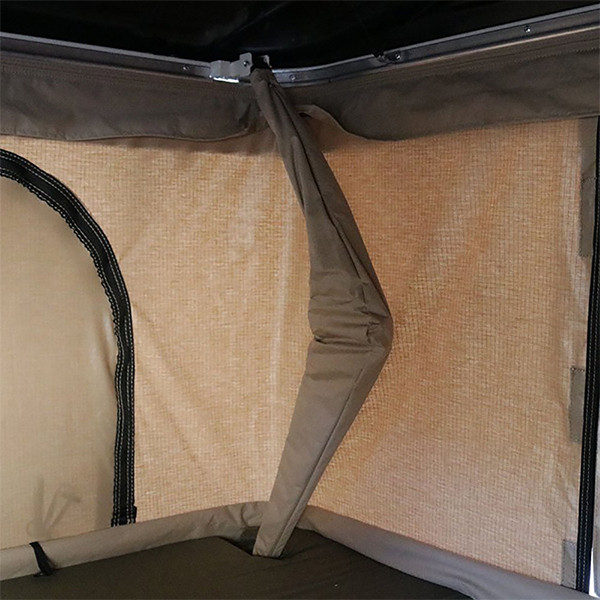 Capacul cortului este fabricat din material compozit din fibra de sticla cu grosime 5mm, avand finisaje de culoare alba. Peretii cortului sunt fabricati din canvas de inalta calitate de tip poly-cotton (amestec de poliester si bumbac, folosit la corturi) cu densitate de 400g/m2 si culoare beige. Acest material este Rip-Stop (in caz de taiere nu se descoase) fiind rezistent la apa.