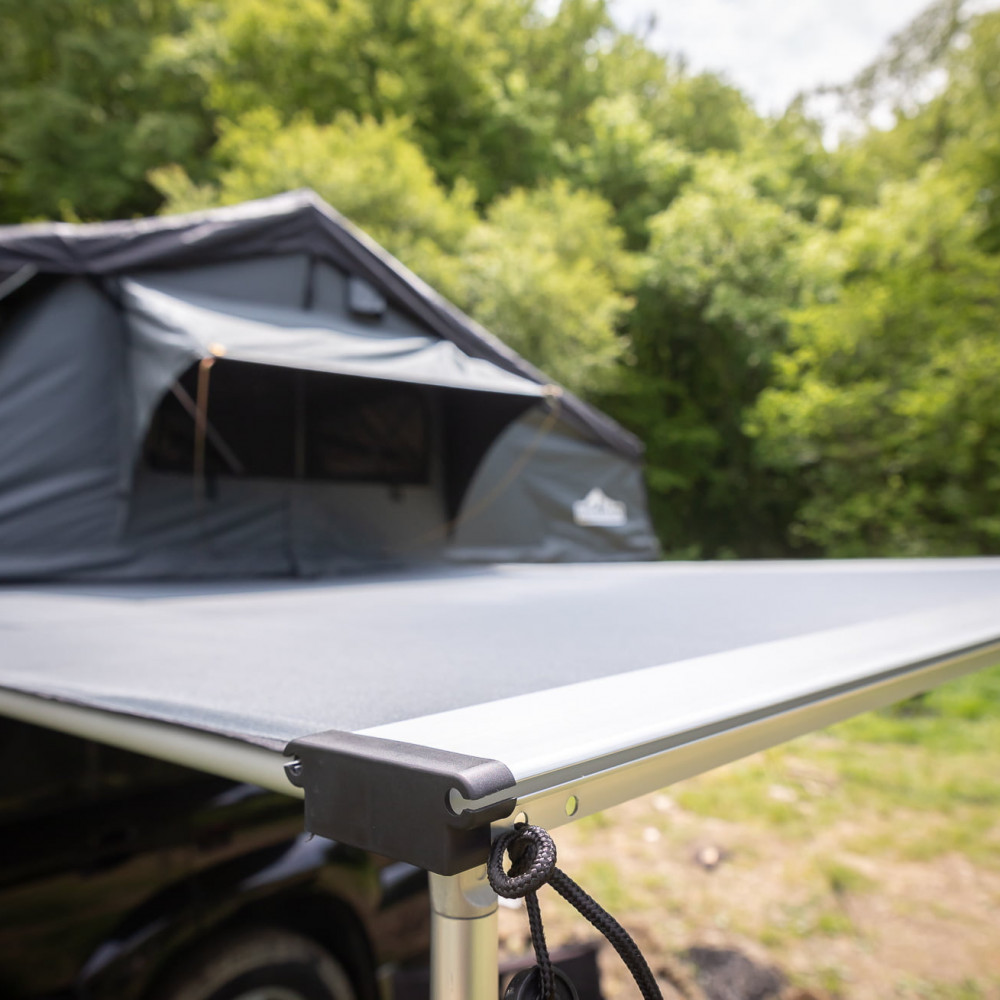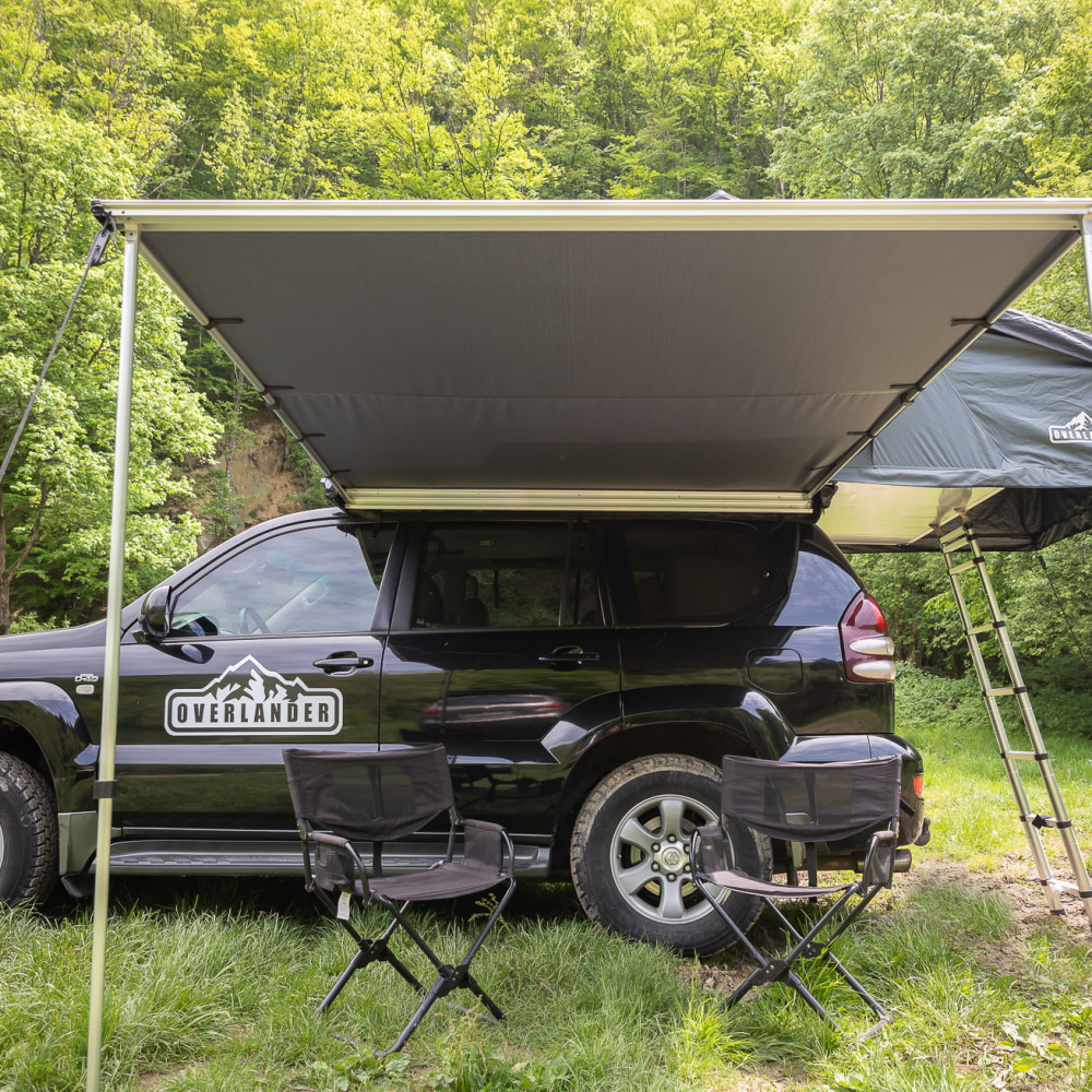 Marchiza auto Overlander 2X2.5 M cu dimensiunile de 2×2,5 metri este perfecta pentru a crea umbra si protectie in timpul activitatilor in aer liber. Materialul durabil, reglarea in inaltime a stalpului, husa de protectie si accesoriile incluse fac din aceasta marchiza o optiune practica si versatila pentru a te bucura de confort si protectie in orice moment.