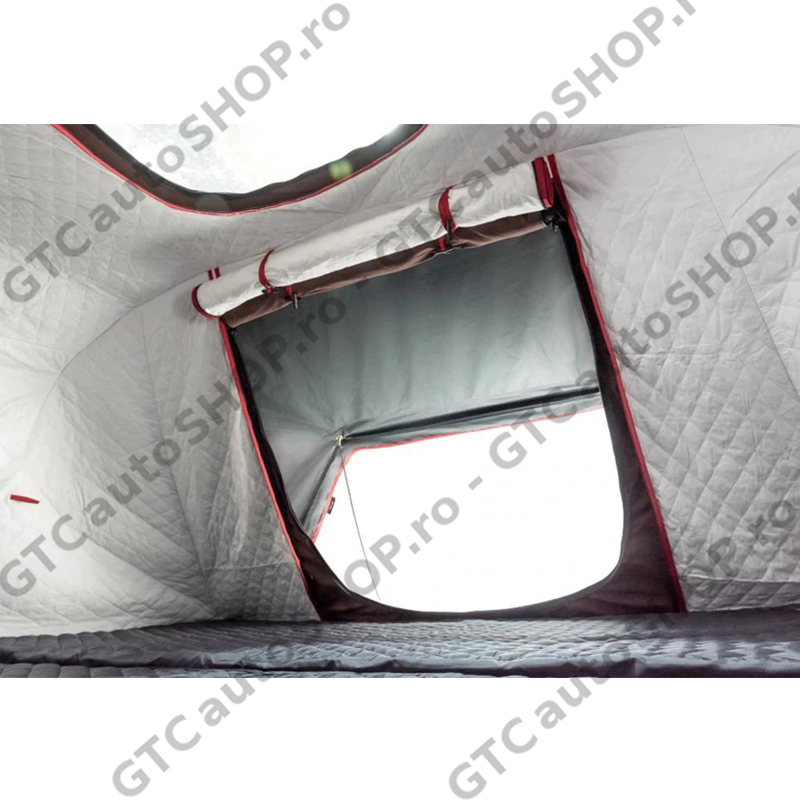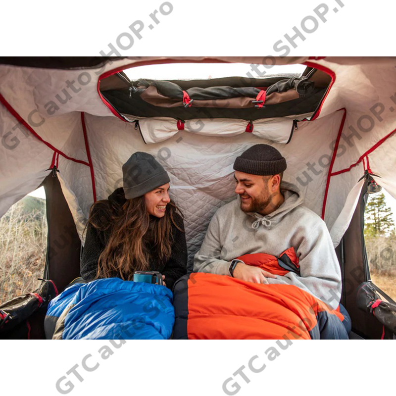 Țineți frigul afară adăugând un strat interior de izolare termică la cortul de plafon iKamper Skycamp. Pânza de izolare termică este ușor de atașat la interiorul cortului, realizată din două straturi din material poli-bumbac respirabil și oferă cortului o atmosferă confortabilă. Toate cele trei ferestre cât și ușa principală pot fi rulate pentru accesul ușor în interior.