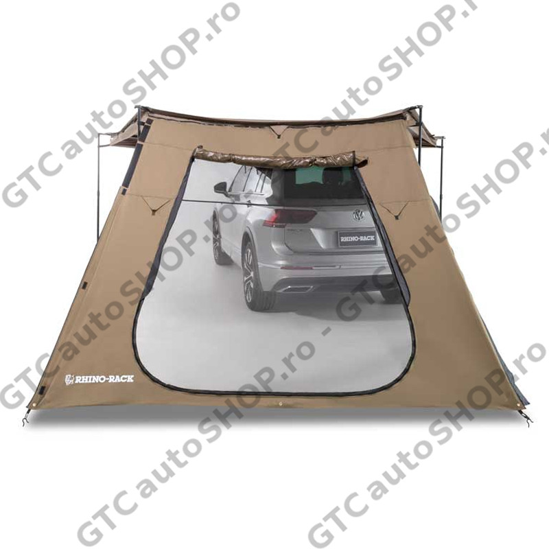 Paravant lateral pentru marchize Batwing Compact, cu usa – 1 bucata! Montajul este posibil atat in pozitie orizontala sau verticala, cat si „pe diagonala”. Fixare prin fermoar. Dispune de o deschidere mare care se poate folosi ca si usa (deschis complet), geam (cu plasa anti-tantari), sau perete intreg (inchis complet).