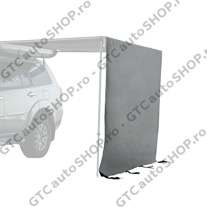 Se culiseaza pe canalul exterior al marchizei si se poate ancora in pamant la inclinatia dorita de dvs. Este fabricat din acelasi material poliester ripstop 400d oxford precum marchizele Front Runner si este rezistent la razele UV si intemperii.