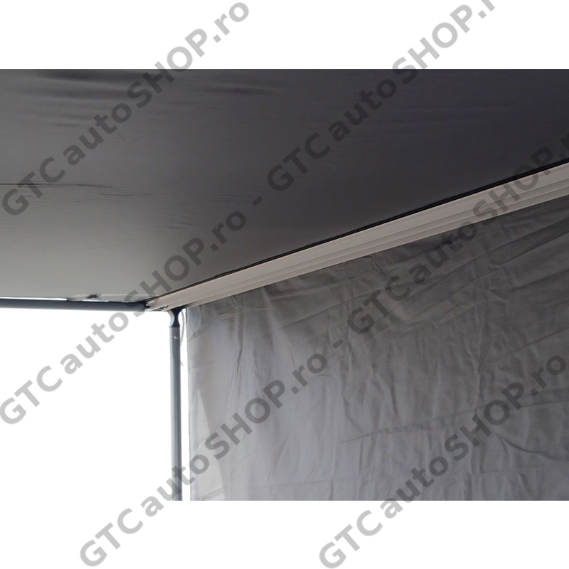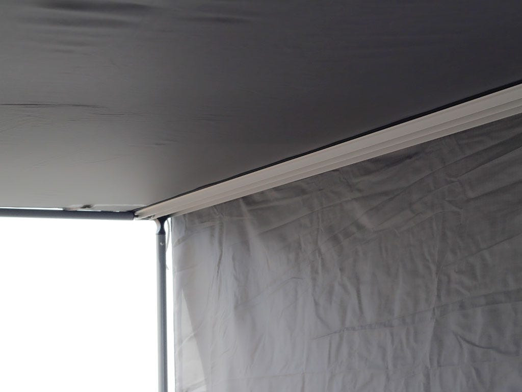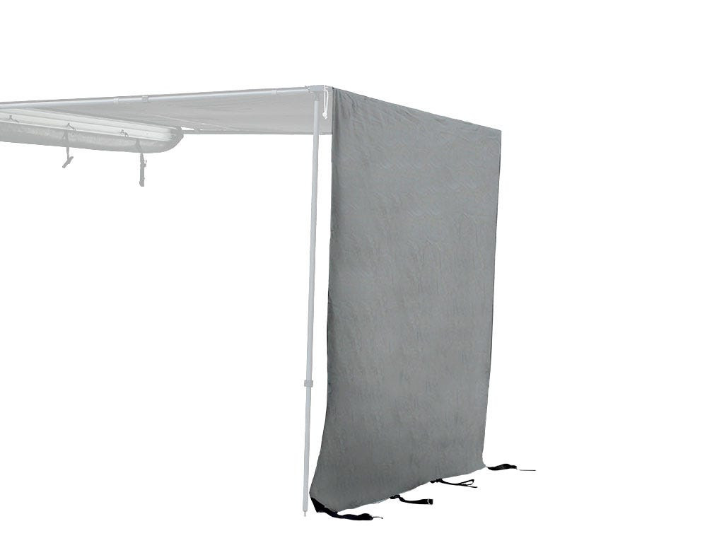 Se culiseaza pe canalul exterior al marchizei si se poate ancora in pamant la inclinatia dorita de dvs. Este fabricat din acelasi material poliester ripstop 400d oxford precum marchizele Front Runner si este rezistent la razele UV si intemperii.