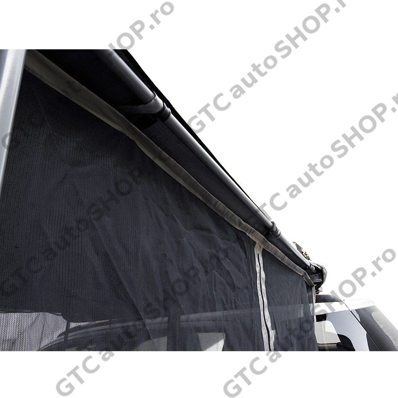 Pentru a crea o camera complet izolata puteti comanda separat o podea rezistenta la apa si insecte de la Front Runner: https://shop.gtcauto.ro/produse/echipamente-overlanding-sau-expeditie/podea-impermeabila-250cm-front-runner