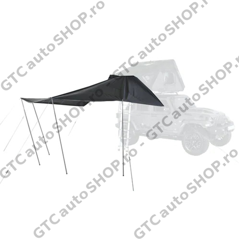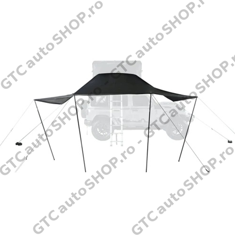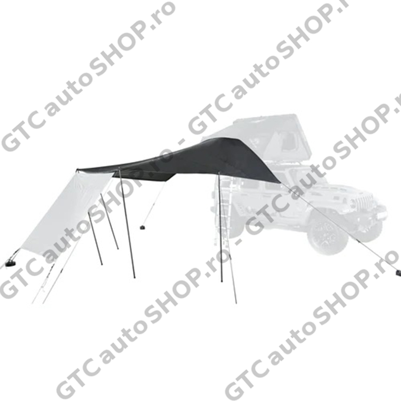 Protejați-vă familia de căldură și de ploaie, astfel aventura va deveni și mai plăcută. Parasolarul poate fi atașâșat direct cortului cu ajutorul unui fermoar, iar bețele pot fi ridicate foarte ușor.