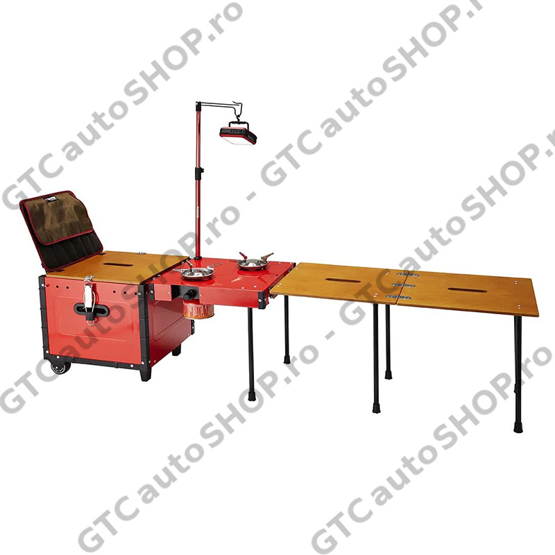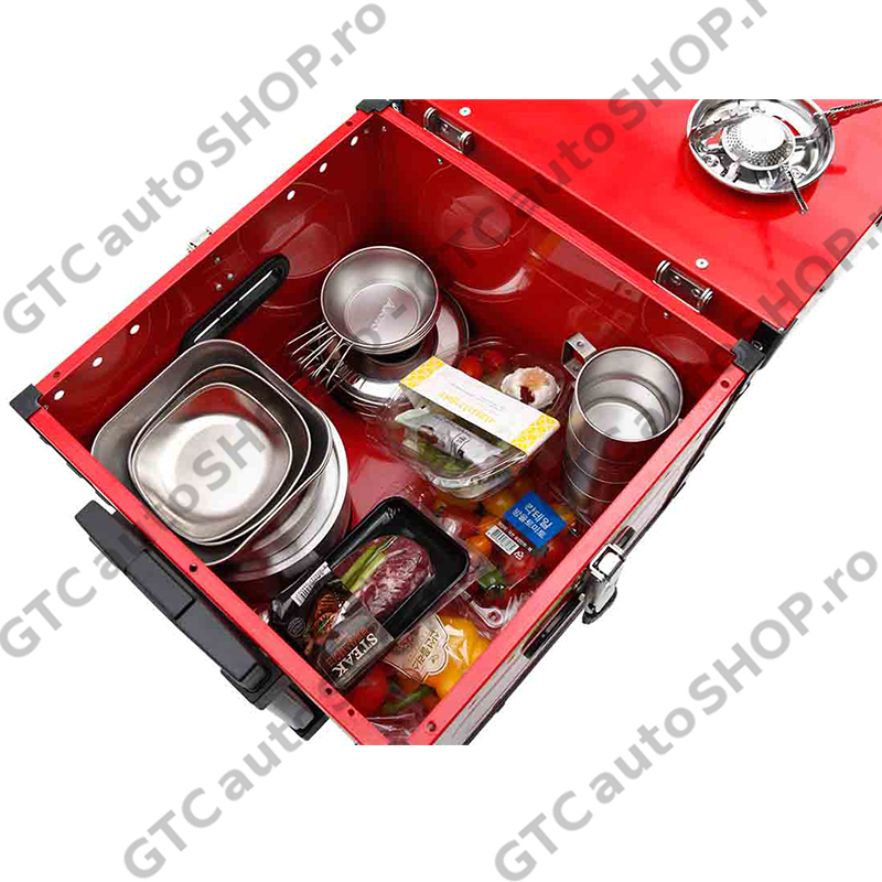 COMPACT - Tot ce este necasar pentru gatitul in aer liber (masa, soba de gatit, vase, ustensile, mancare) intr-un singur loc.