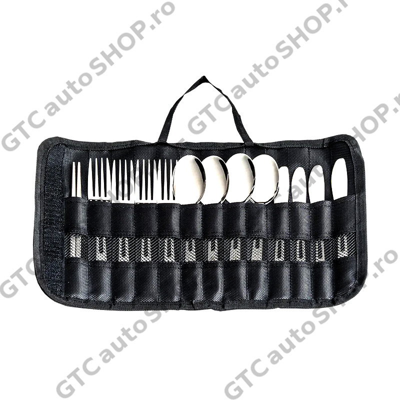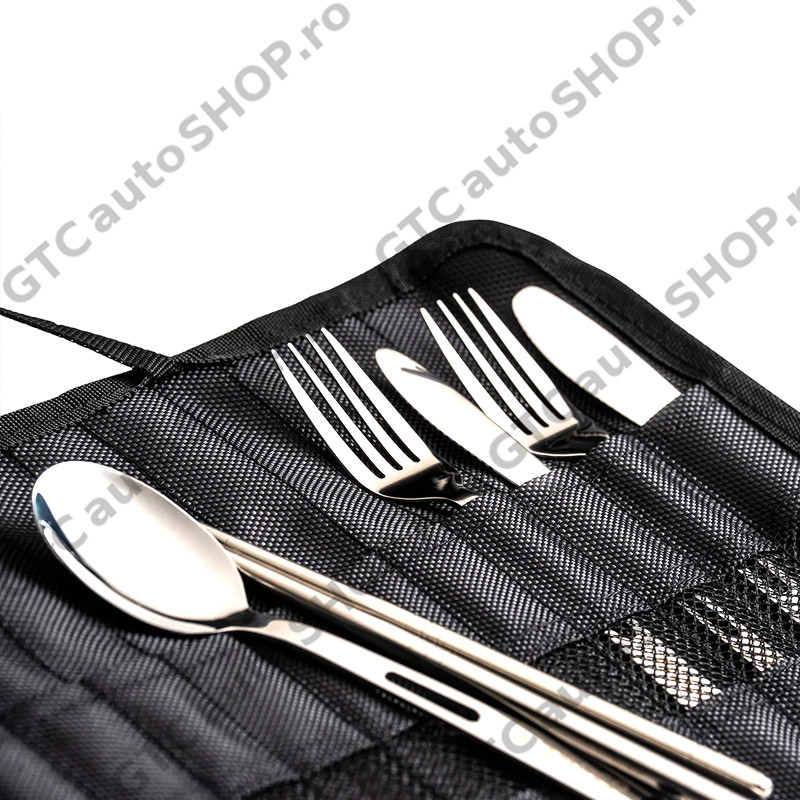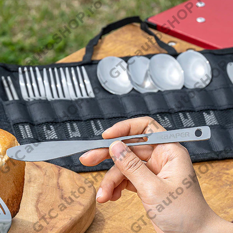 Setul de tacamuri camping este o solutie versatila, compusa din 13 piese din otel inoxidabil, perfecta pentru aventuri in aer liber si utilizare zilnica. Rezistent la masina de spalat vase, durabil si compact, setul include tacamuri pentru patru persoane si o husa de transport care poate fi folosita si ca suport de expunere.