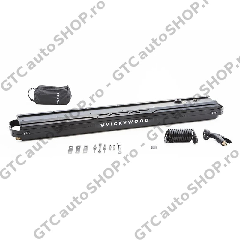 Pachetul include un rezervor de apa de 26L cu bride pentru montaj, furtun pentru dus cu lungime de 2m, para de dus si saculet pentru depozitarea accesorilor.