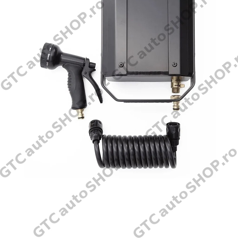 Un rezervor de apa portabil pentru exterior, sub presiune, cu functie de dus, iti ofera flexibilitate si confort maxim in urmatoarea ta aventura.