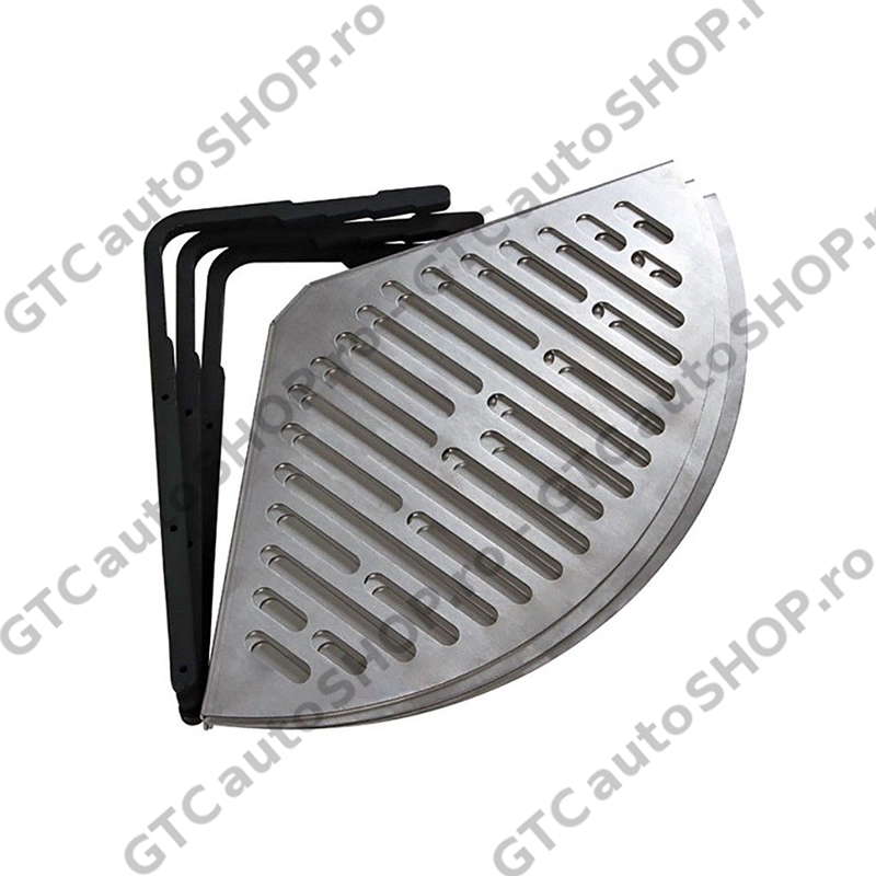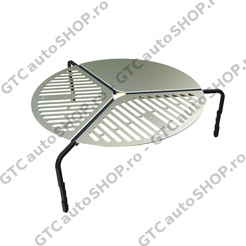 Picioarele sunt din aluminiu iar partea superioara a gratarului din otel inoxidabil 3CR12. Sectionat in 3 parti, doua de gril si o plita, acesta va ofera multiple optiuni de gatit.