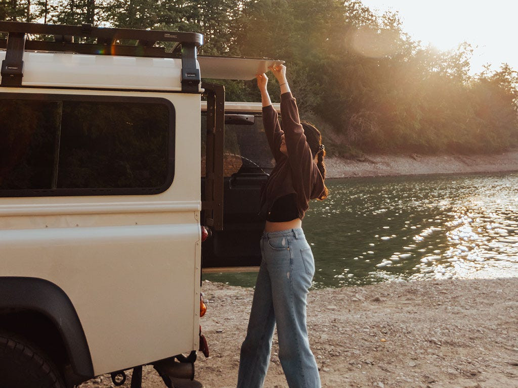 O soluție completă de masă montată sub portbagaj și depozitare a mesei, care vă permite să încărcați, transportați și accesați cu ușurință masa în orice aventură.