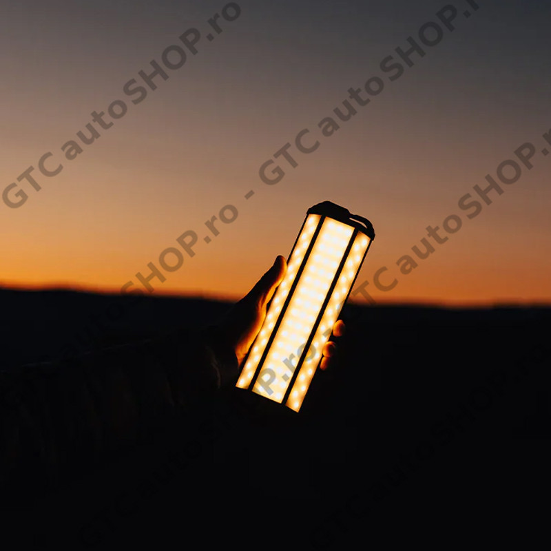 Conceputa pentru iubitorii de camping, excursionisti si pasionatii de activitati in aer liber, aceasta lanterna multidirectionala ofera trei temperaturi de culoare LED, un fascicul cu unghi larg de 180 de grade si modul Turbo pentru luminozitate suplimentara atunci cand este necesar.