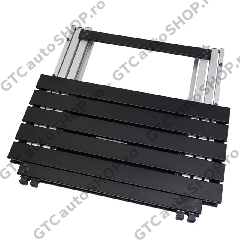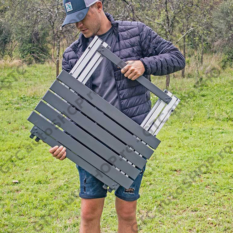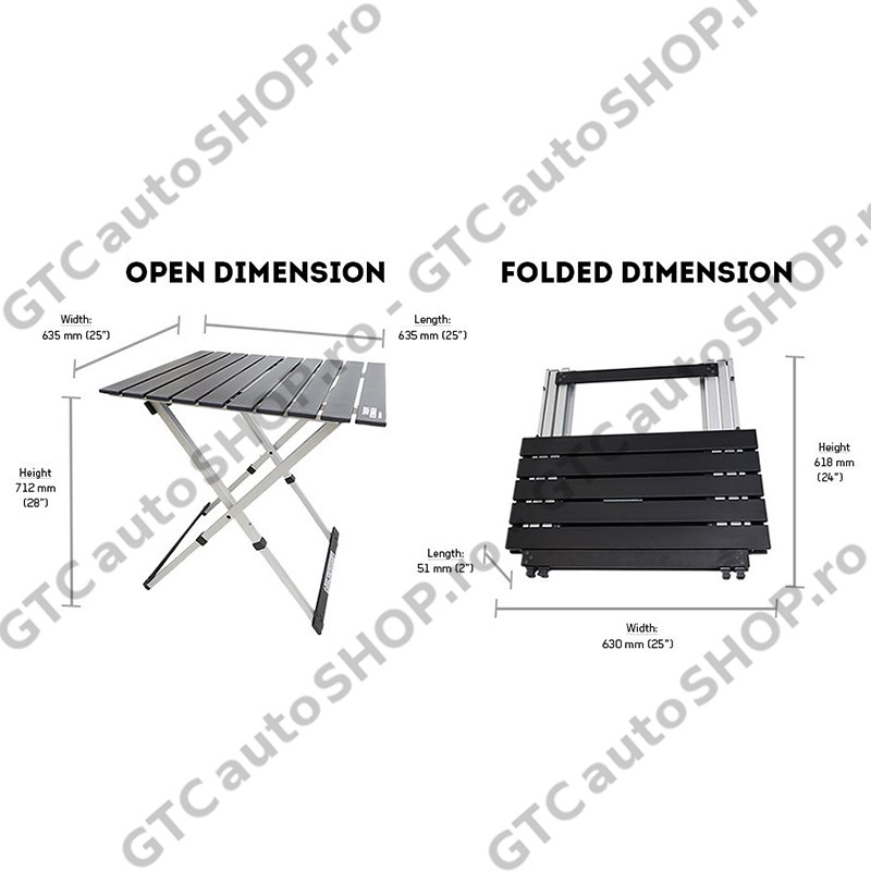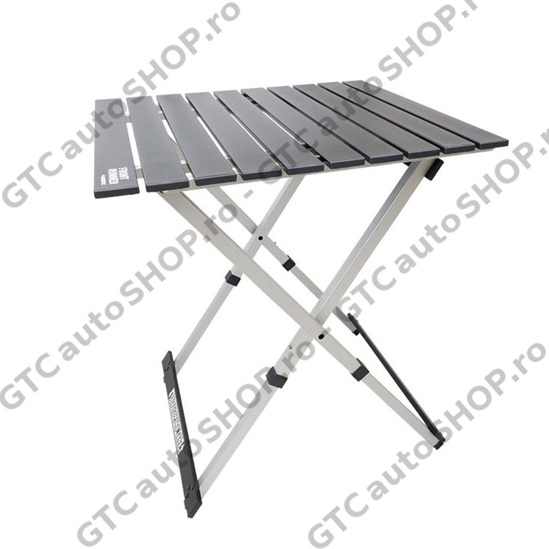 - Blatul si picioarele mesei sunt fabricate din aluminiu, se pliaza si depoziteaza usor