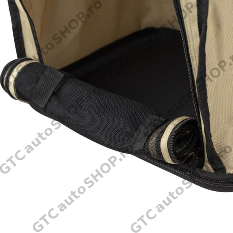 Fereastra frontala cu plasa si fermoar are doua roluri: de a asigura protectie continutului impotriva insectelor si de a pastra continutul in siguranta pe parcursul transportului. Cand nu este folosit, organizatorul se strange compact intr-o geanta de transport cu carcasa rigida integrata, oferind o solutie portabila pentru depozitarea acestuia.Partea superioară a formularului