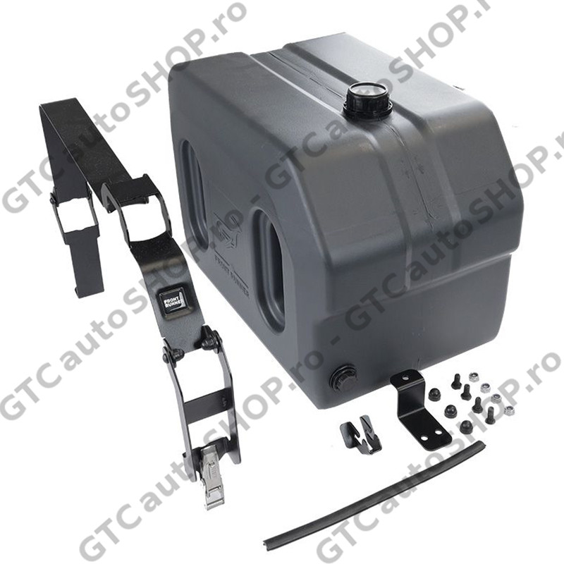 - Sistemul de montare dispune de o curea articulata care fixeaza rezervorul de apa pe portbagaj