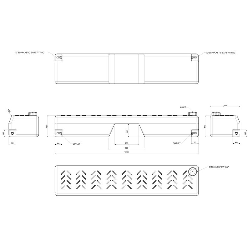 Dimensiuni rezervor: 1200mm (lungime) x 180mm (inaltime) x 250mm (latime)