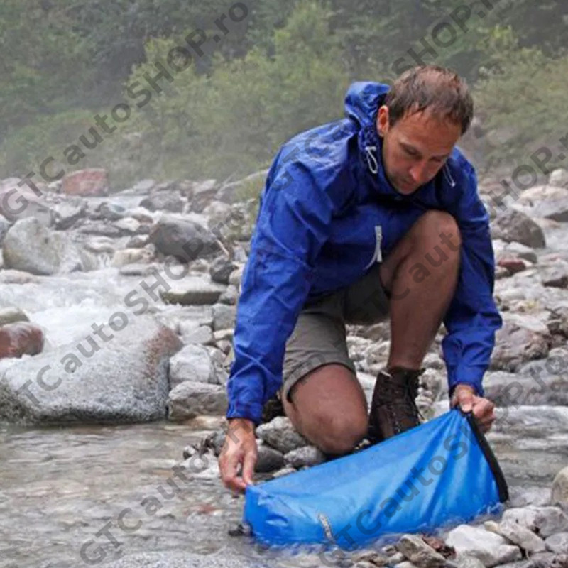 Acest sac de apa va ofera o sursa importanta de apa pentru camping sau pentru expeditia dvs. Poate fi folosit ca sursa de apa pentru spalat sau ca sursa de apa pentru dus impreuna cu duza de la Ortlieb (vanduta separat).