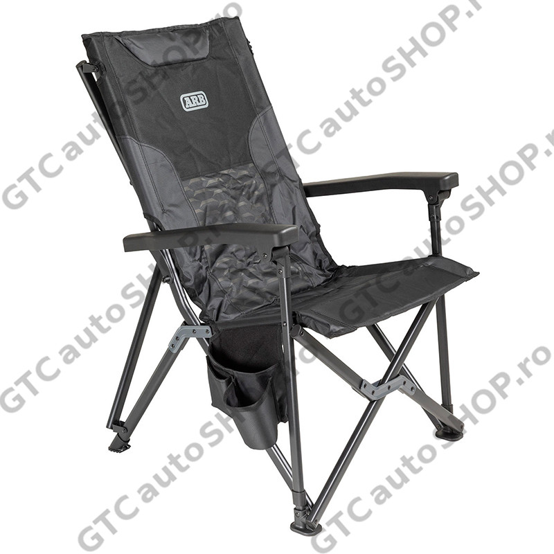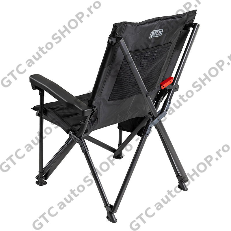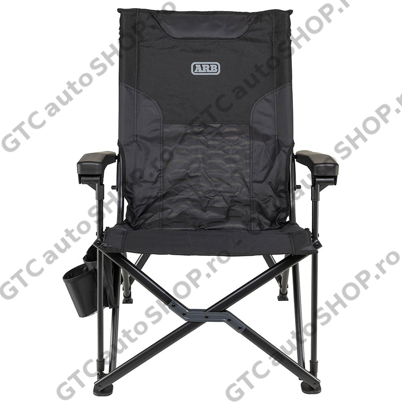 Scaunul ARB Pinnacle ofera o experienta premium atunci cand vine vorba de campare. Dispune de un cadru din otel negru, robust si elegant, cu bare transversale de ranforsare ce au culoare contrastanta gri-carbune. In partea din spate este prevazut un sistem de eliberare rapida, facandu-l usor de pliat atunci cand vine vorba de impachetare. Corpul scaunului este fabricat din poliester cu densitate 600D si panouri ripstop cu densitate 420D ce au captuseala interioara si grafica eleganta. Cotierele largi ofera confort maxim atunci cand sunt utilizate.