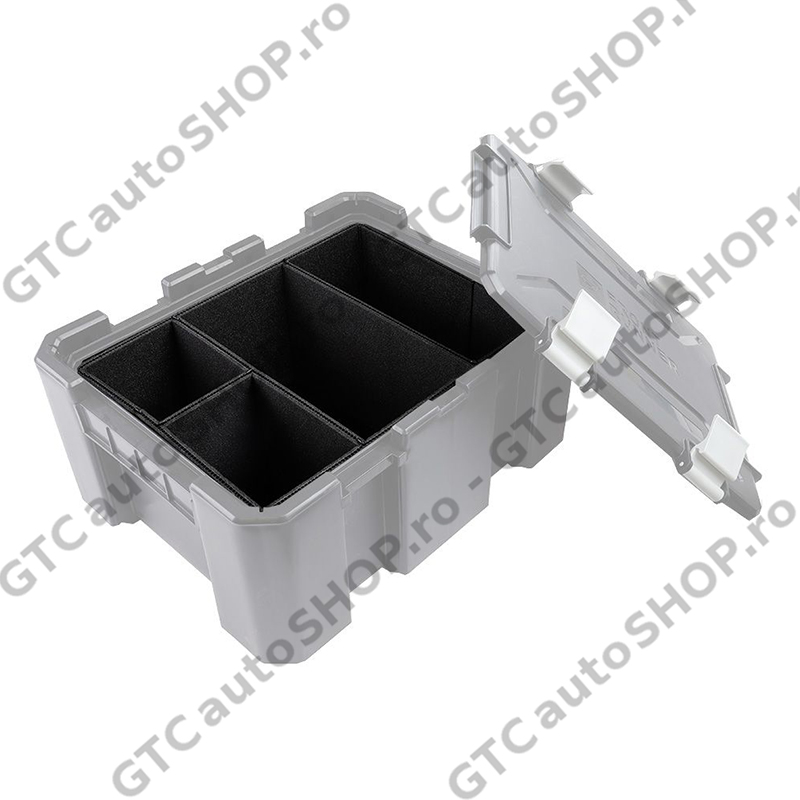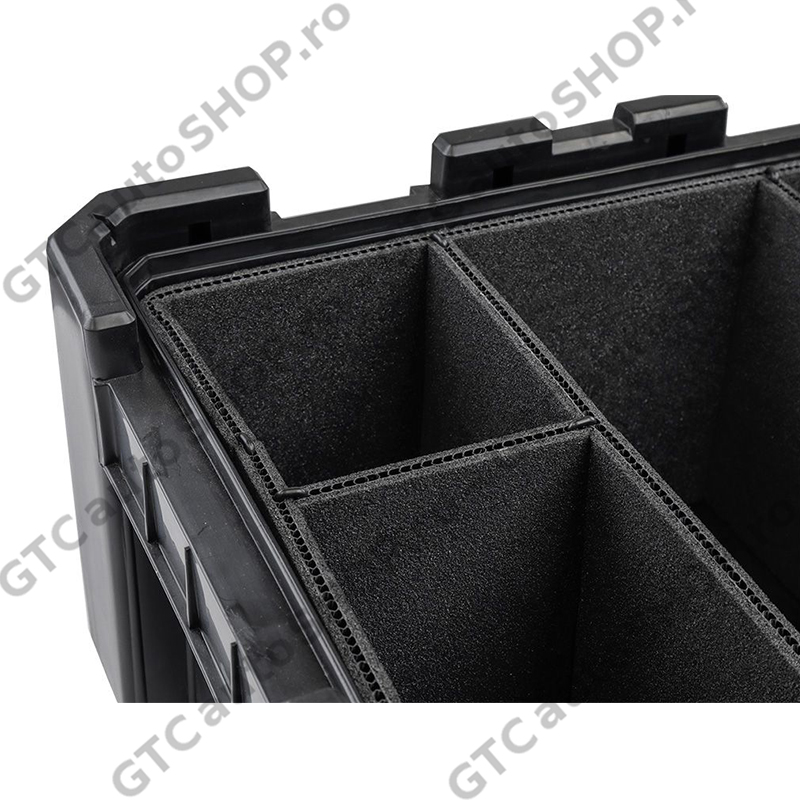 Pachetul include 3 separatoare de spuma ce pot fi taiate in functie de preferintele dvs., 10 clips-urile de fixare si un cutit pentru a taia la dimensiunile dorite.