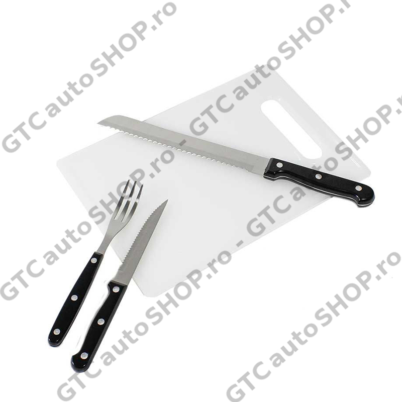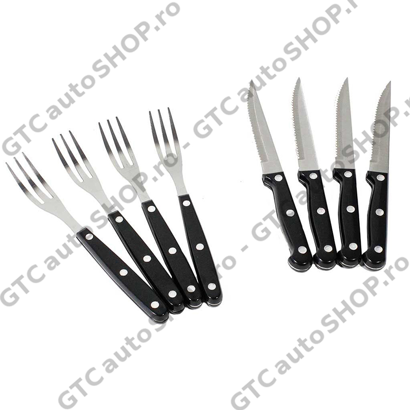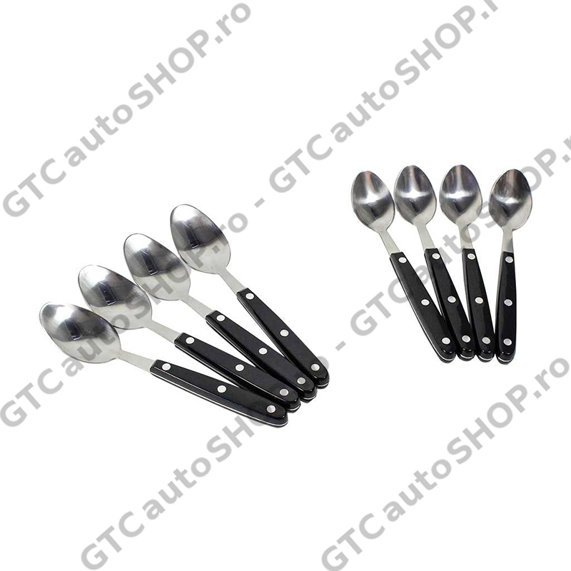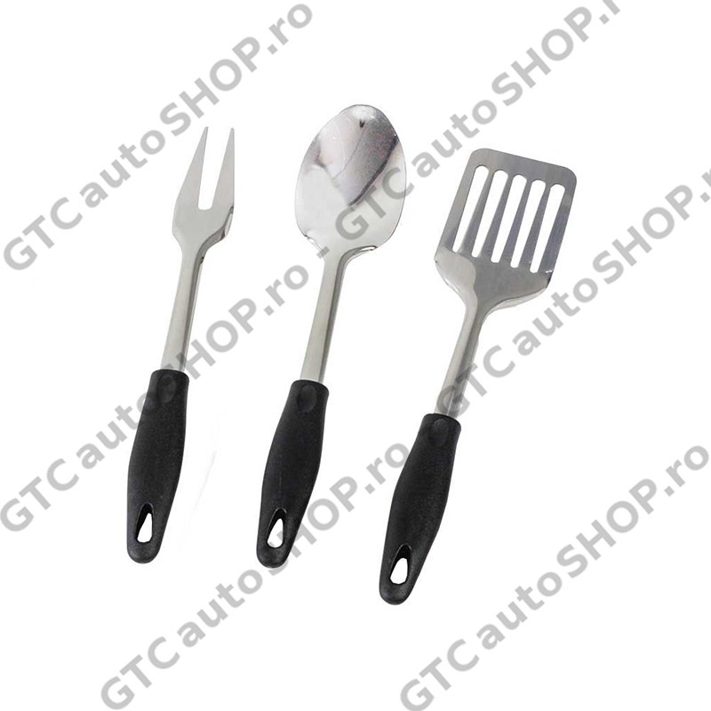 - Ustensilele sunt fabricate din otel cu maner de plastic rezistent