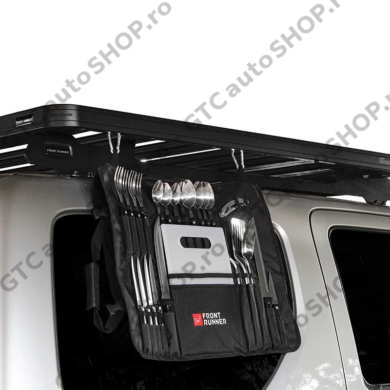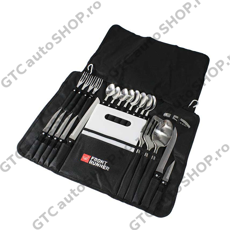 Setul de ustensile de bucatarie de la Front Runner este un must-have in orice aventura fie ea de camping sau overlanding cat si in cele mai lungi expeditii. Sunt incluse toate ustensilele necesare unei serviri sau pentru prepararea mesei. Geanta de transport se poate agata oriunde fiind prevazute cu carabine si poate fi transportata foarte usor avand manere.