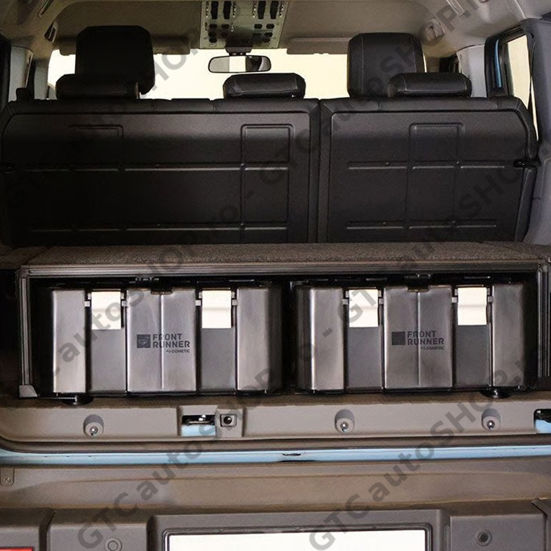 Cadrul sistemului de depozitare este finisat cu acelasi strat durabil de vopsea neagra, similar cu cel al portbagajelor pentru plafon si al altor produse Front Runner. Acest sistem nu utilizeaza carabinierele si colierele cu tije, se fixeaza pe vehicul folosind punctele de montaj OEM si suruburile din pachet.