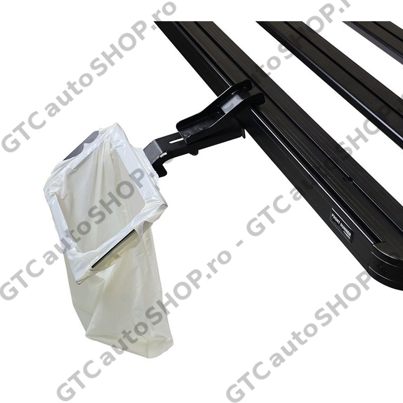 Fabricat din otel, finisat cu acelasi strat de pulbere neagra durabil, rezistent la coroziune ca si portbagajele Front Runner. Pachetul include suportul pentru sacul de gunoi, instructiuni si accesorii pentru montare.