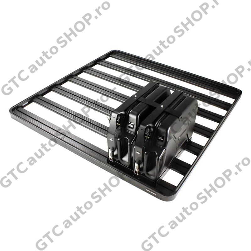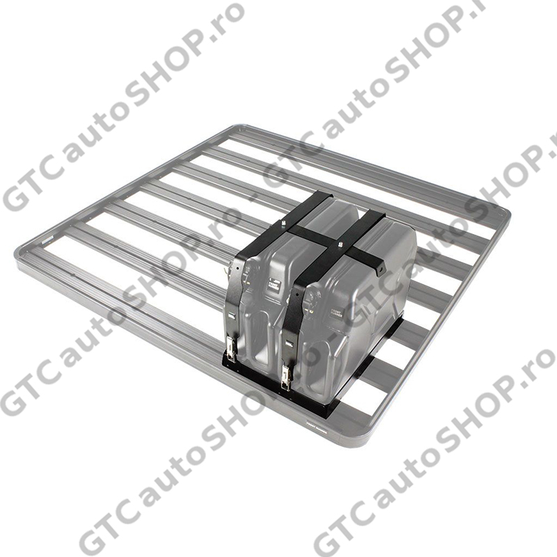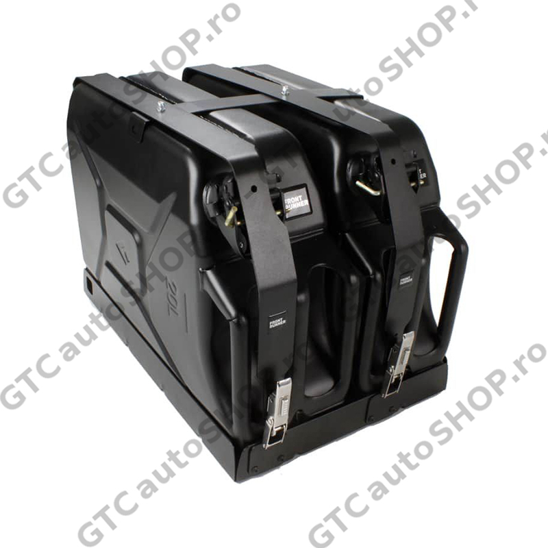 Acest suport va permite sa transportati in siguranta doua canistre de combustibil. Se monteaza pe portbagajele Front Runner si este necesar in orice aventura.