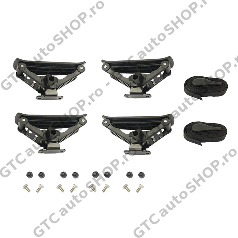 Transportati-va caiacul, barca sau schiurile de surf cu aceste suporturi unice pentru barci, care au fost proiectate pentru a gazdui o varietate de forme si dimensiuni de carena si este ideal pentru placi mai mari, cum ar fi SUP-urile si placile de windsurf. Setul include patru suporturi, fiecare cu o sa pivotanta independenta si o parghie de setare a unghiului de fixare. Tampoanele sale flexibile protejeaza carena si vine cu doua curele de fixare ce au catarame.