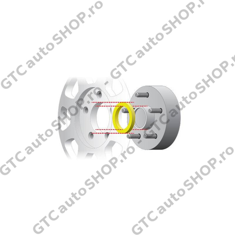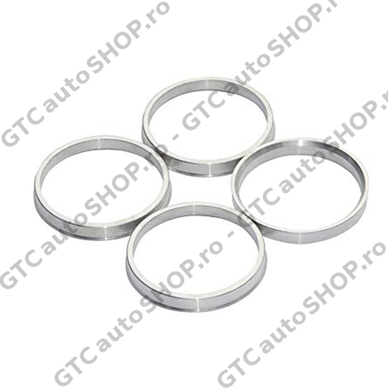 Set de patru inele din aluminiu, care permit centrarea unor jante cu diametrul interior CB de 110 mm pe butuc de roata cu diametru de 106.1 mm.