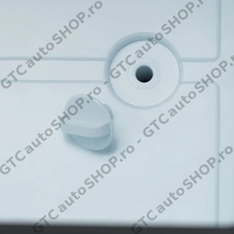 - Detaliile externe includ manere din aliaj de aluminiu pliabile automat, un capac detasabil cu suprafata texturata antialunecare, garnituri TPE pentru asigurarea unei etansari perfecte a capacului si un deschizator de sticle integrat.