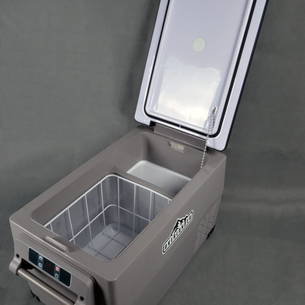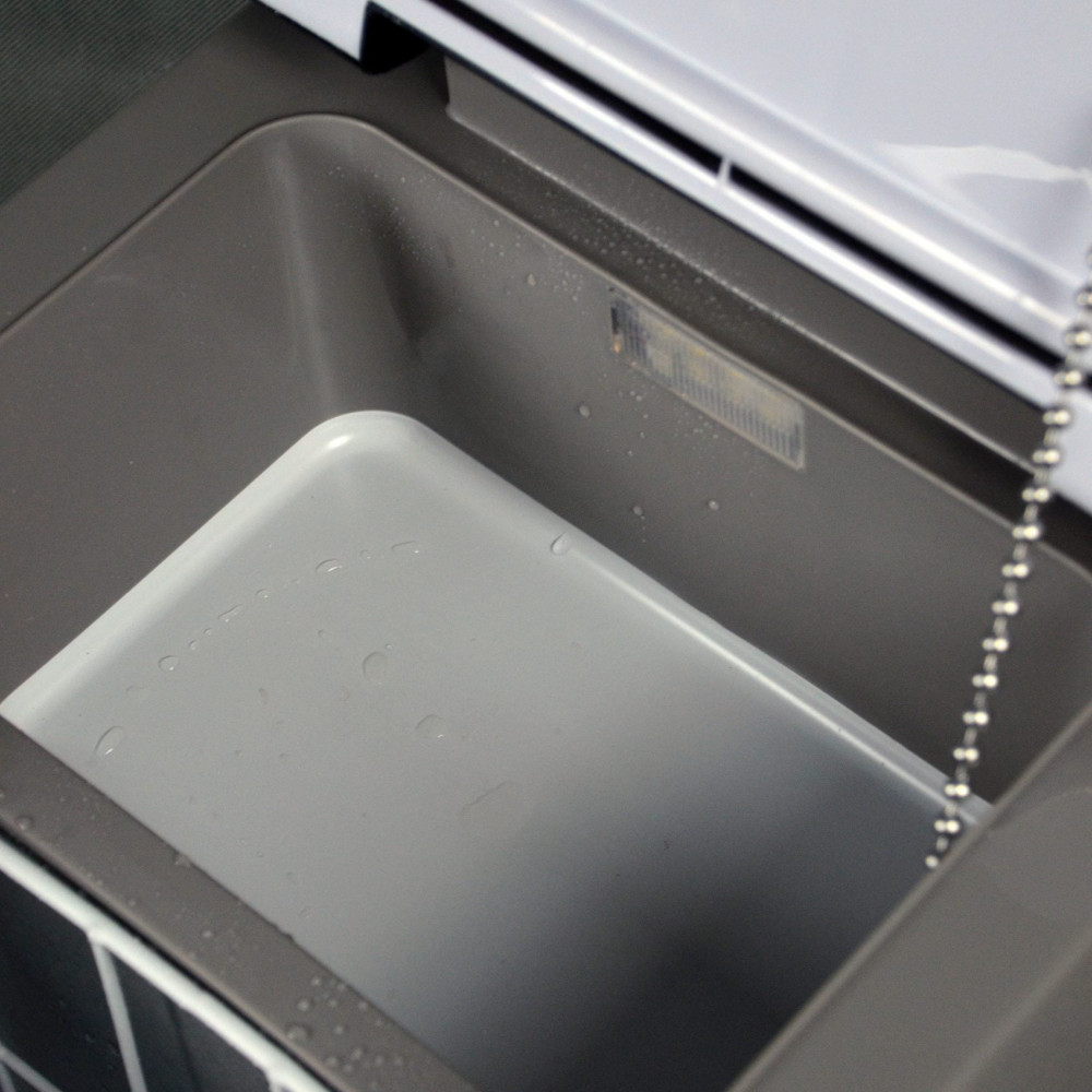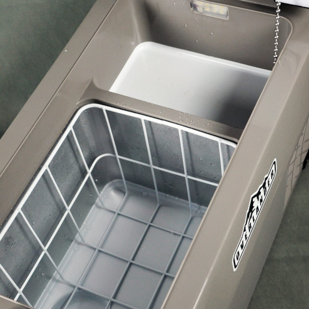 Frigiderul Overlander pentru camping vine insotit de un adaptor AC la DC si un cablu de alimentare DC de 2,5 metri, asigurandu-ti optiuni flexibile pentru alimentare. De asemenea, dispune de o rezerva interioara anti-scurgere pentru a preveni eventualele incidente.
