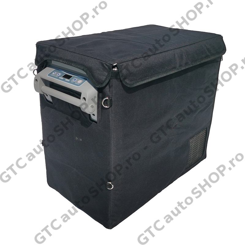 Frigiderul are incluse husa de protectie termica si cos interior cu manere pentru transferul produselor din frigider!