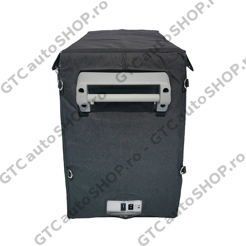 Frigiderul are incluse husa de protectie termica si cos interior cu manere pentru transferul produselor din frigider!