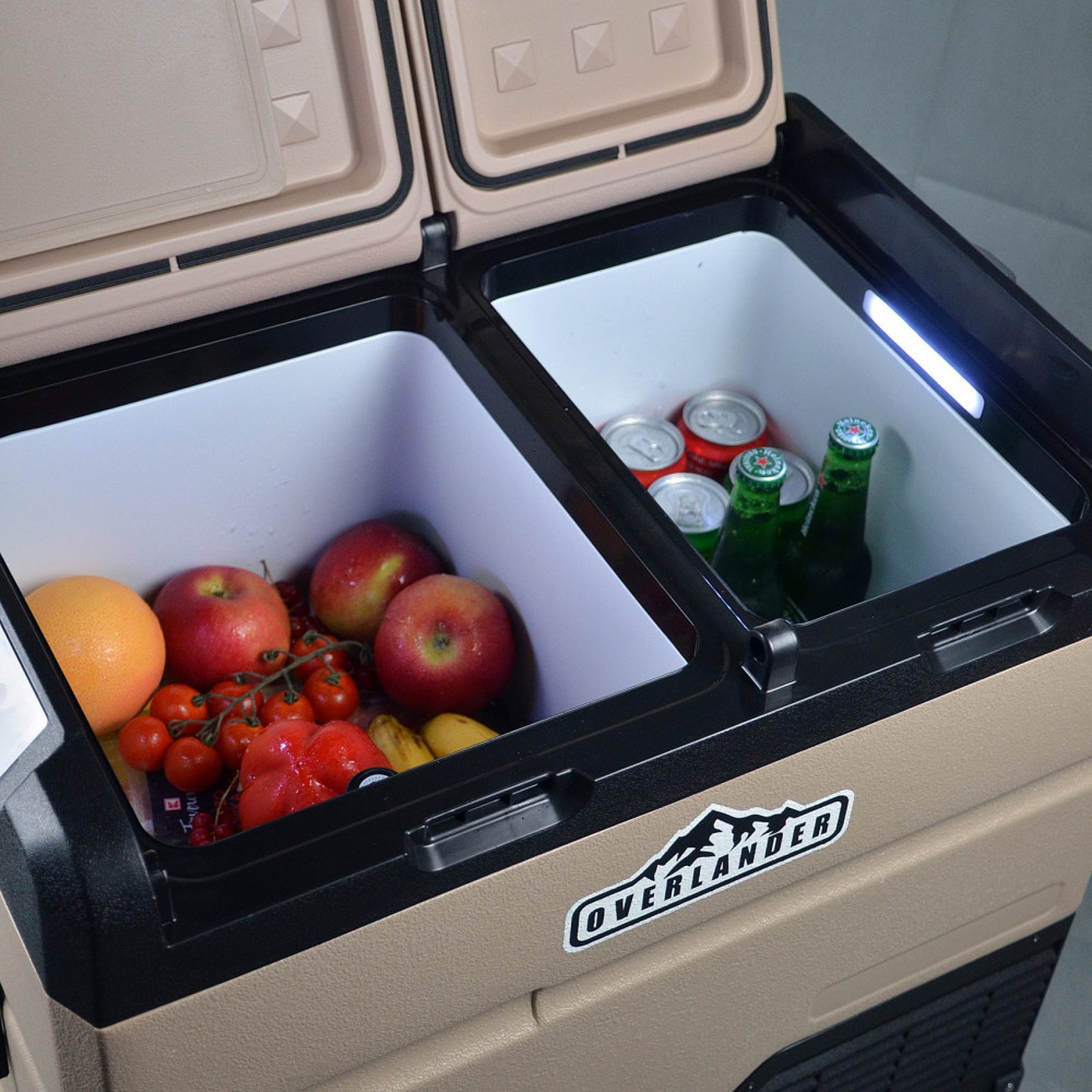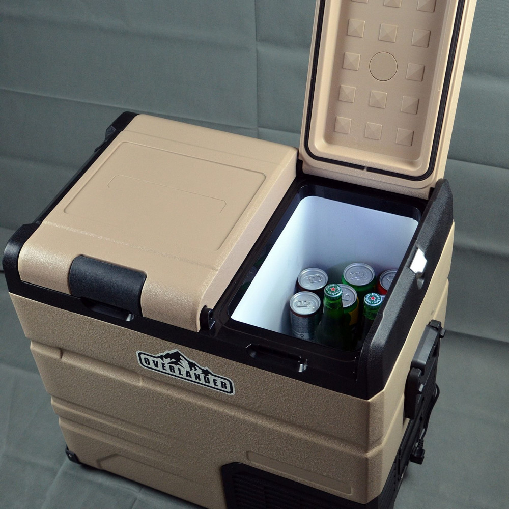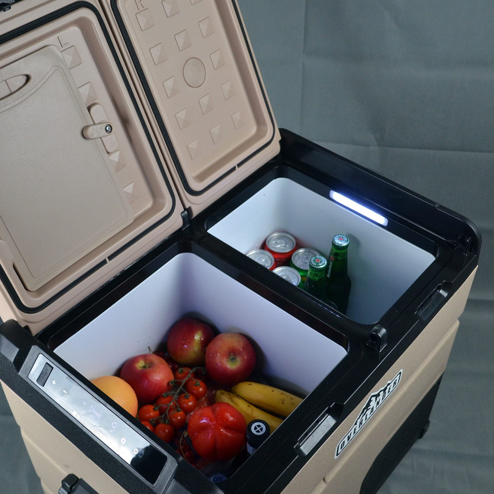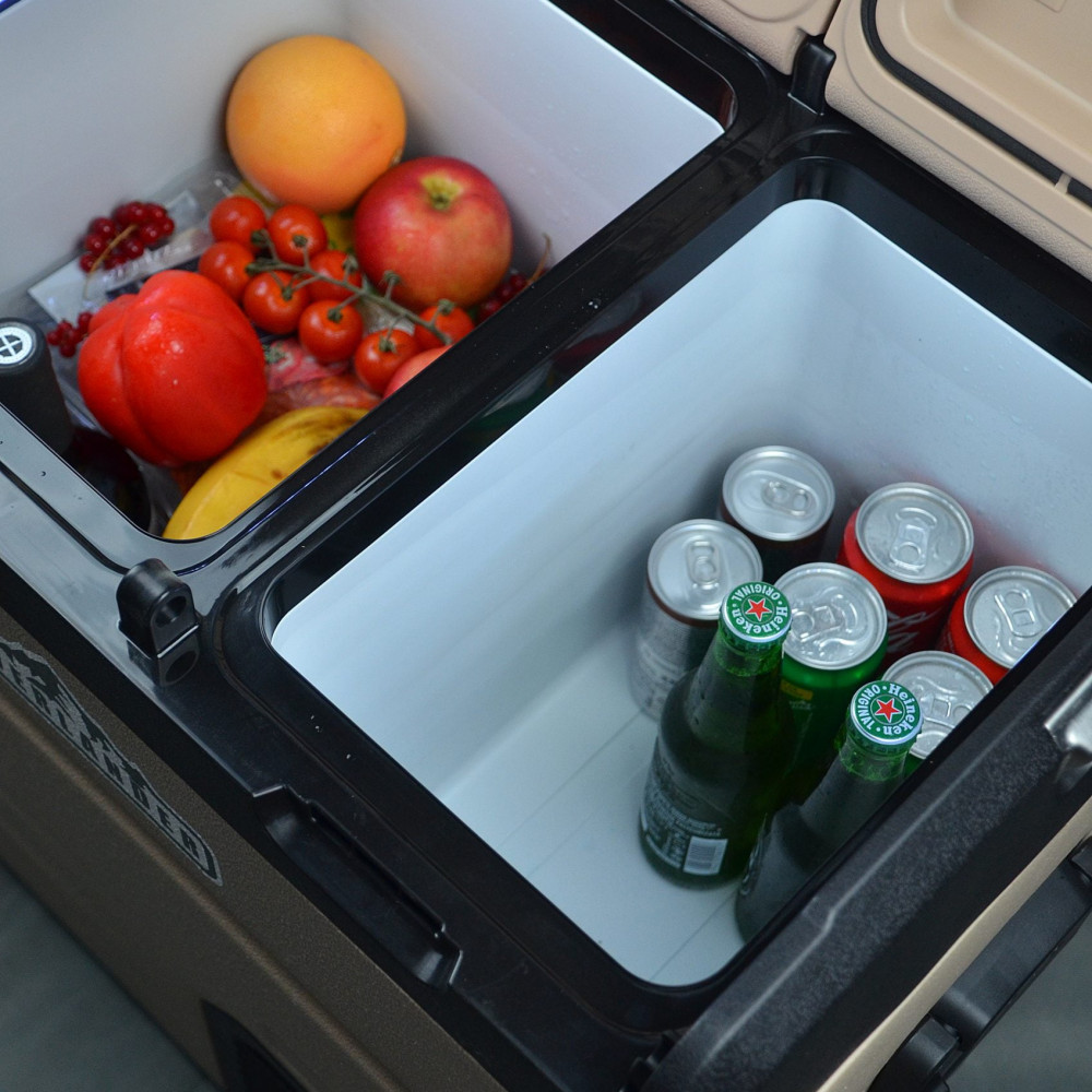 Frigiderul + Congelator Auto Overlander pentru camping de 45L este echipat cu un compresor DC, asigurand o refrigerare eficienta la temperaturi de -20 pana la 20°C.