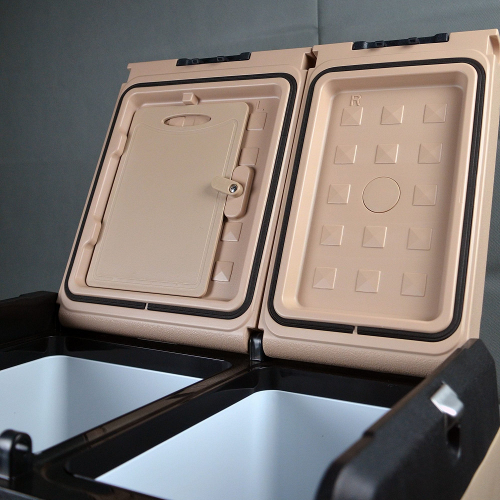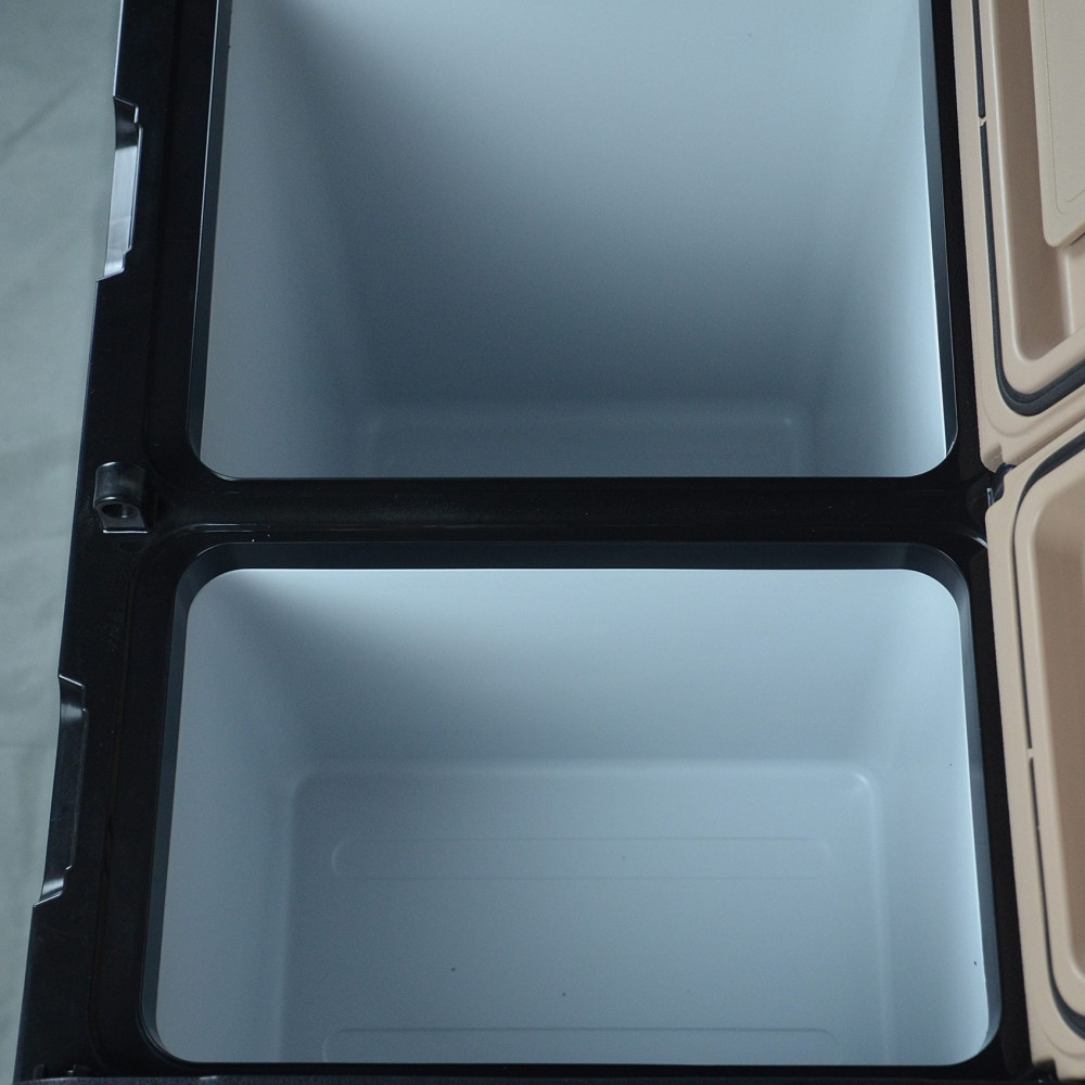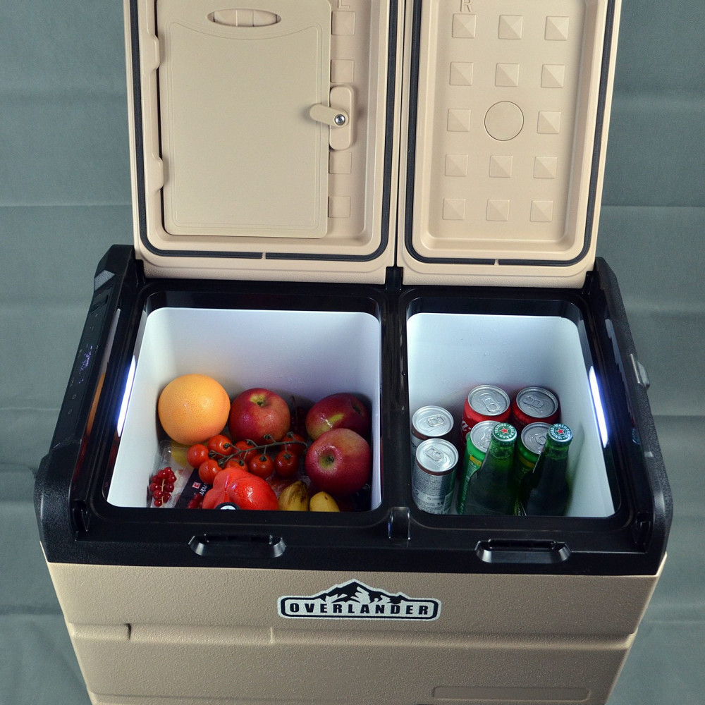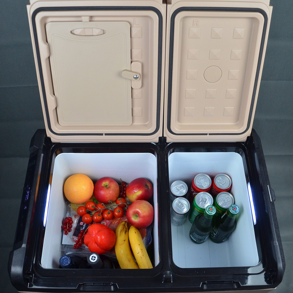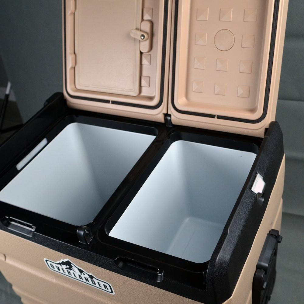 Frigiderul + Congelator Auto Overlander pentru camping de 45L este echipat cu un compresor DC, asigurand o refrigerare eficienta la temperaturi de -20 pana la 20°C.