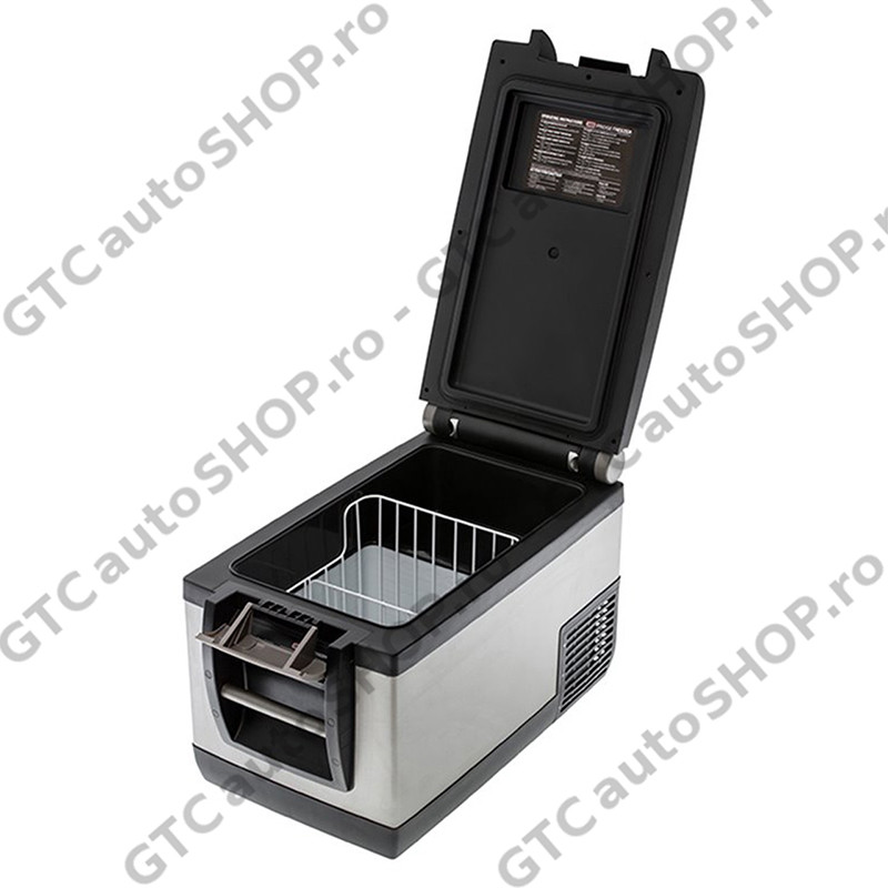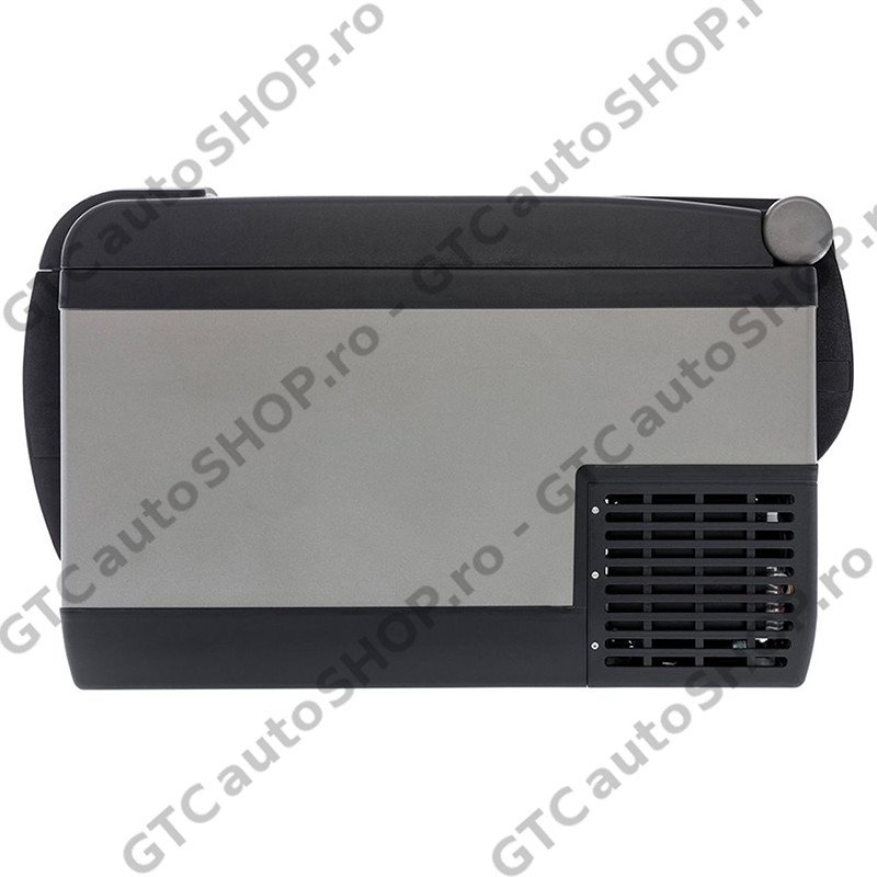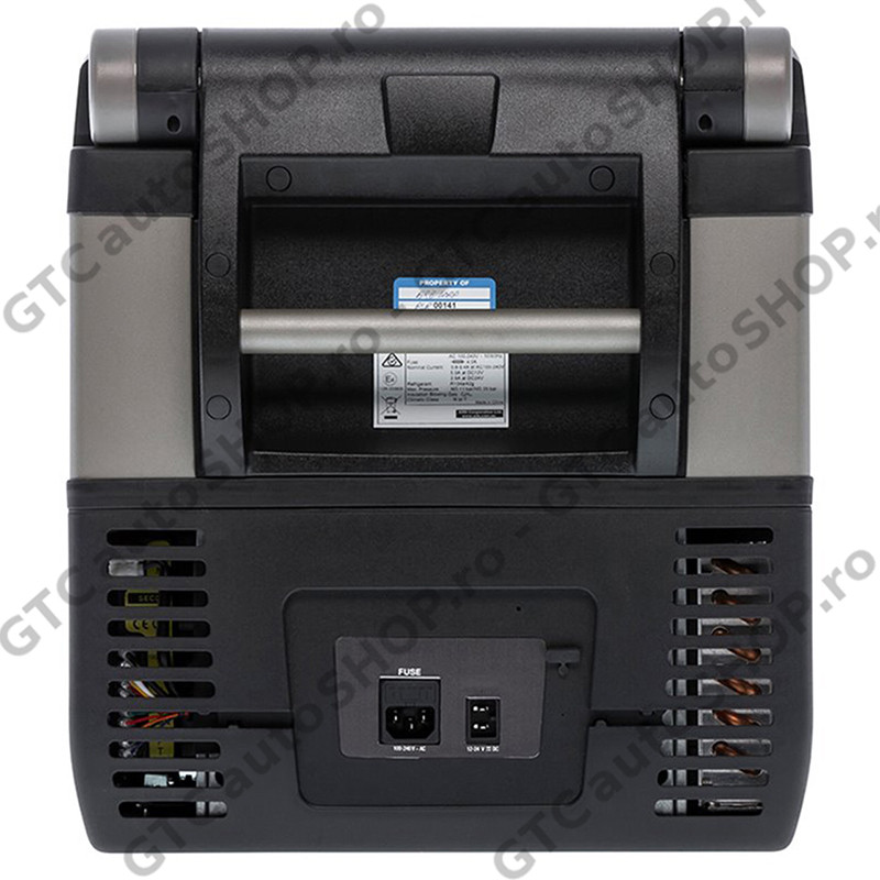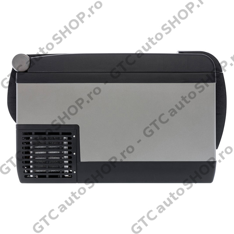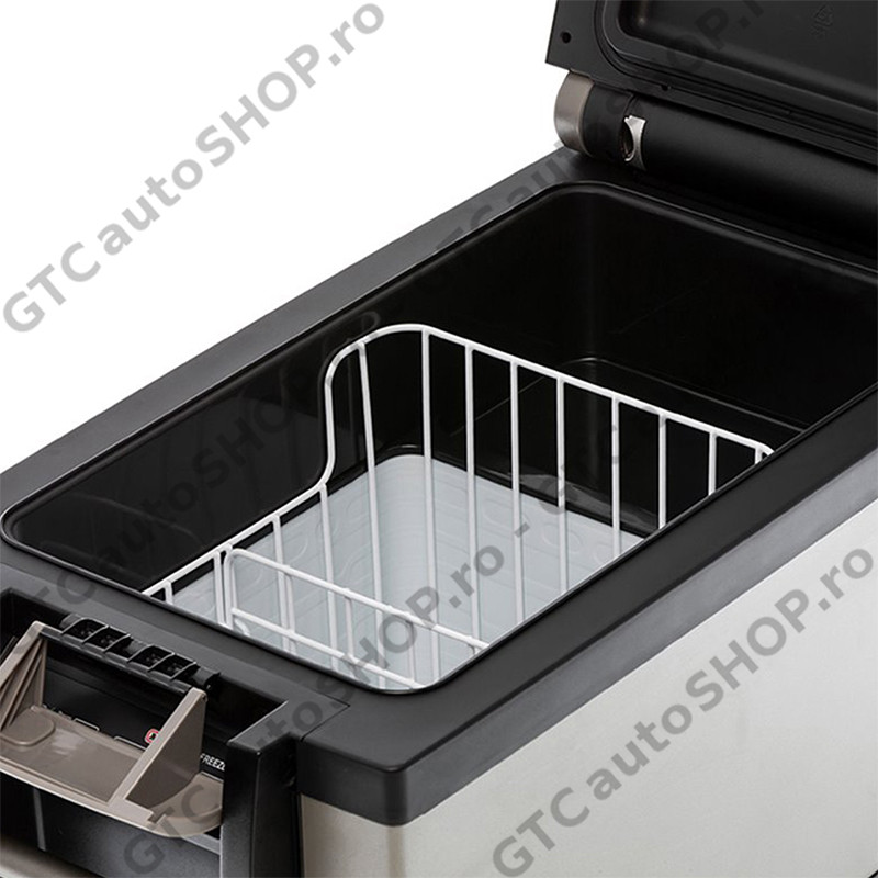 Este gandit pentru montarea in portbagajul masinii: display-ul este dispus pe partea frontala, are picioare de cauciuc, se poate monta pe slider sau diverse suporturi de frigidere. Are buson de golire pentru curatare usoara. Are lumina interioara cu led. Compresorul are control electronic pentru randament al racirii sporit.