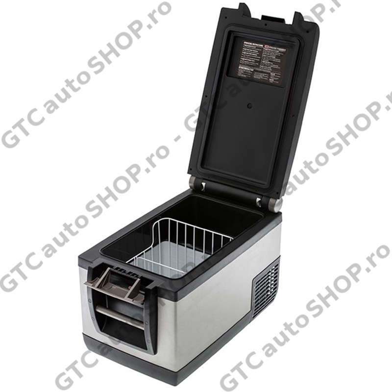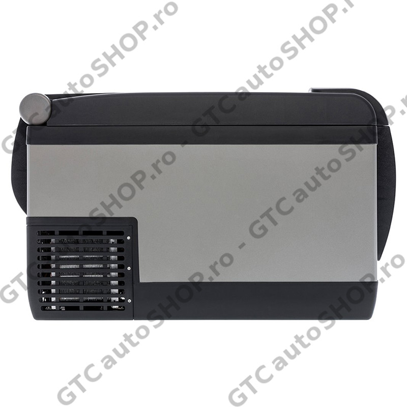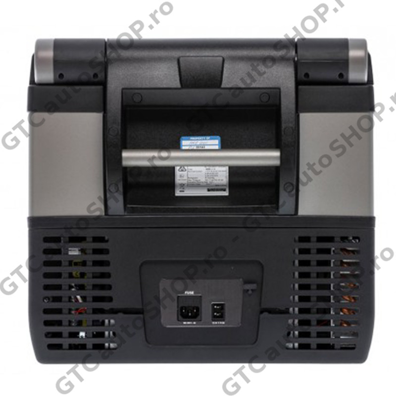 Este gandit pentru montarea in portbagajul masinii: display-ul este dispus pe partea frontala, are picioare de cauciuc, se poate monta pe slider sau diverse suporturi de frigidere. Are buson de golire pentru curatare usoara. Are lumina interioara cu led. Compresorul are control electronic pentru randament al racirii sporit.